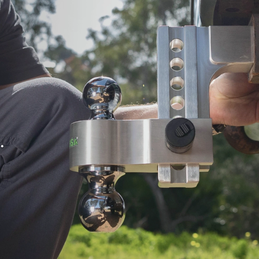 Rhino USA Adjustable Trailer Hitch (2.5-Inch Receiver) – Heavy Duty Aluminum Tow Hitches with 8-Inch Drop/Rise for Truck (18,500 LBS GTW) – Weatherproof Double Anti-Theft Locking Hitch Pins (Silver)(Brushed Aluminum)