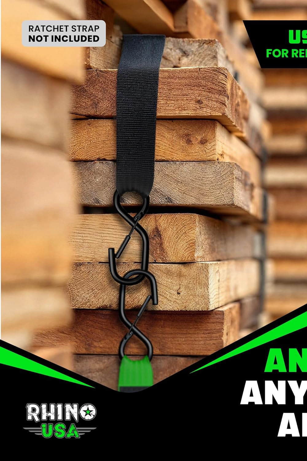 Rhino USA Axle Tie Down Straps – Lab Inspected 11,128lb. Break Strength – Heavy Duty Protective Sleeves & D Rings to Ensure Peace of Mind – Used for Car Engine Hoist, Truck, Trailer, UTV (4-Pack Set)(4-Pack Set)