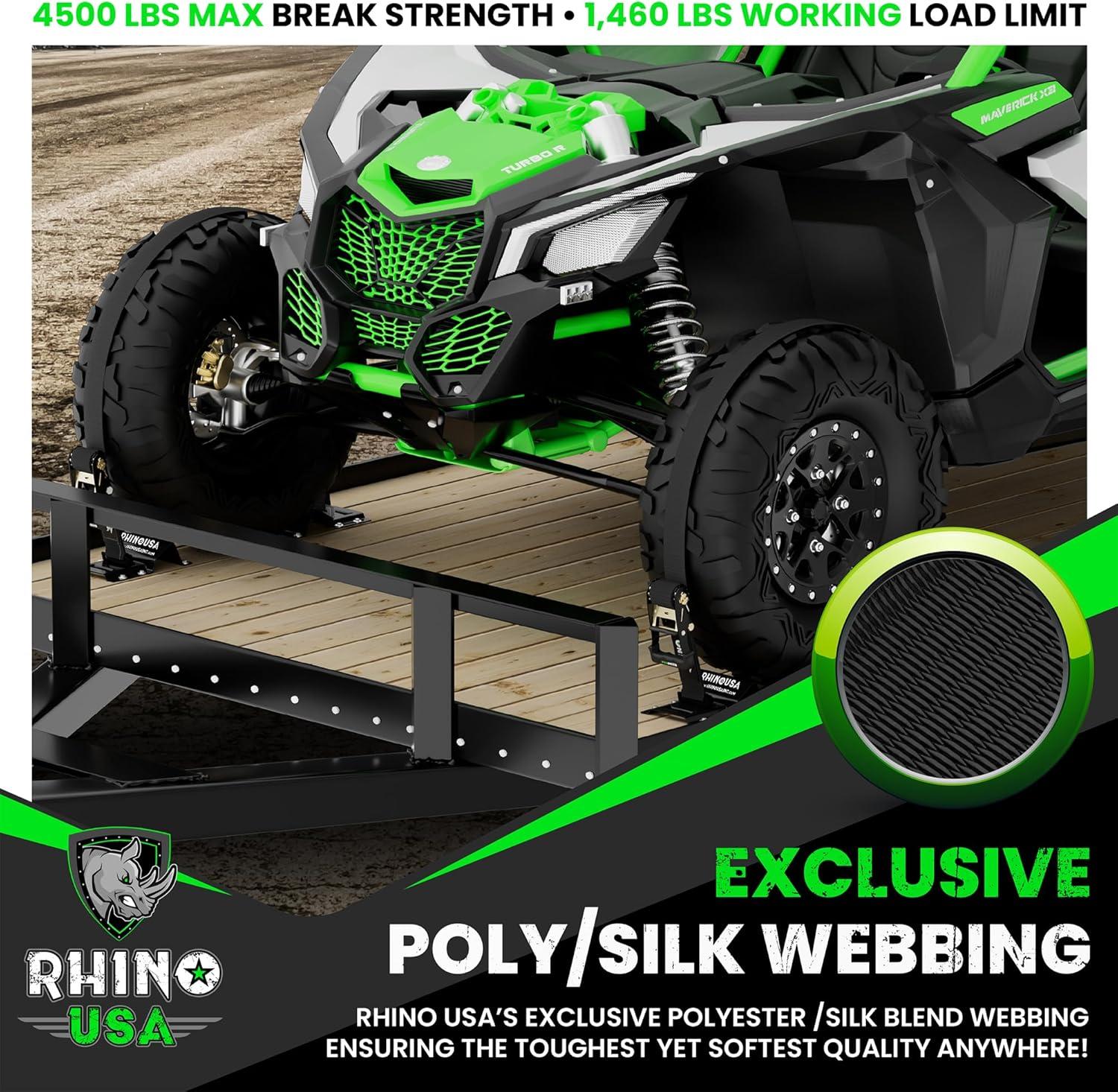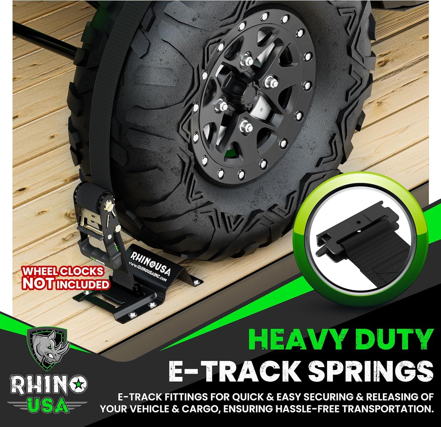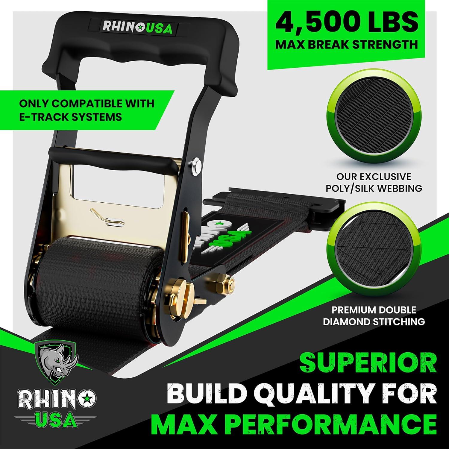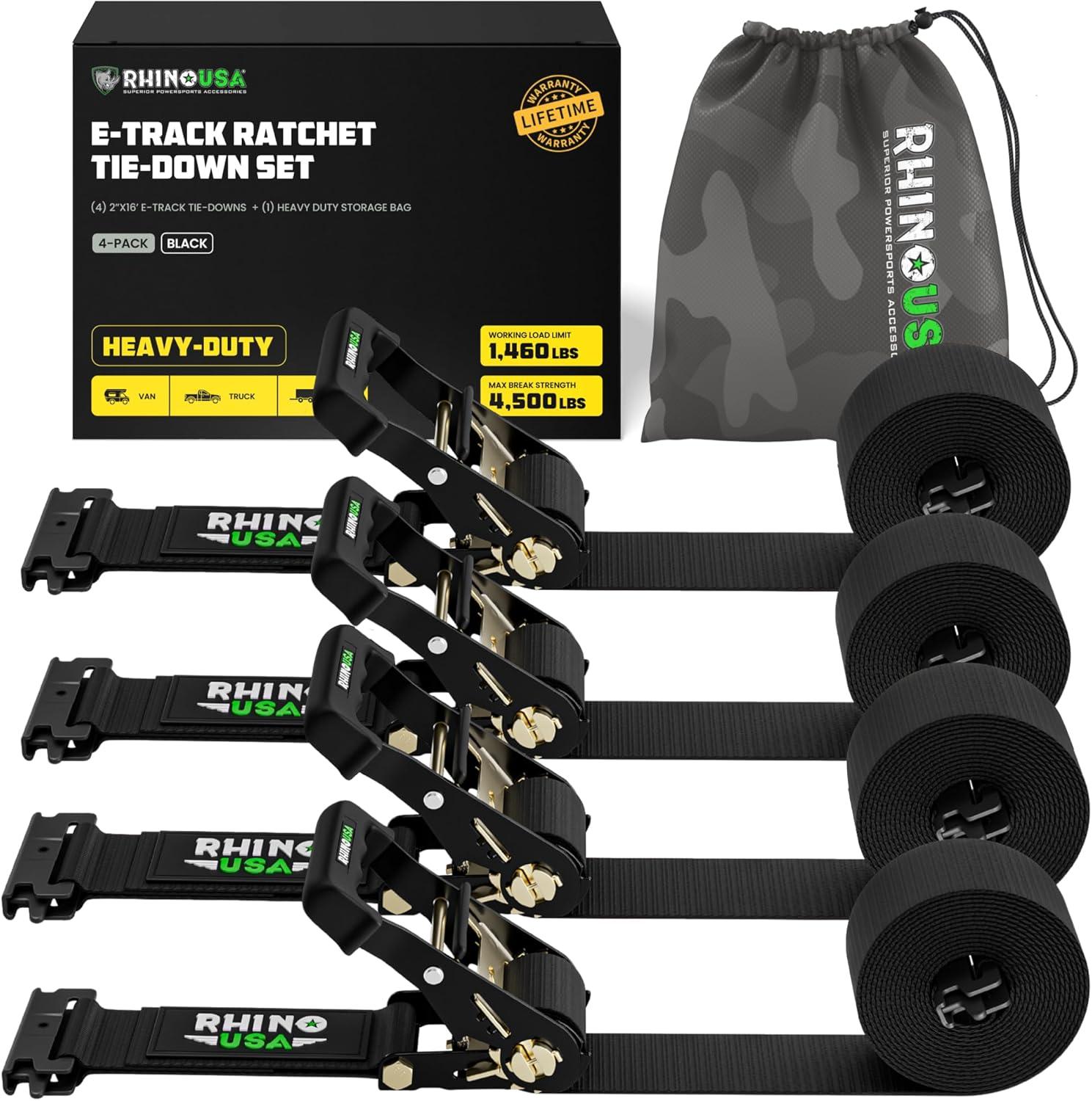 Rhino USA E Track Ratchet Tie Down Straps (4,500lb Break Strength) – Includes (2) Premium 2″ x 16′ eTrack Tie Downs – Ultimate Heavy Duty eTrack Cargo Strap System for Trailer, Truck, Motorcycle(Black)