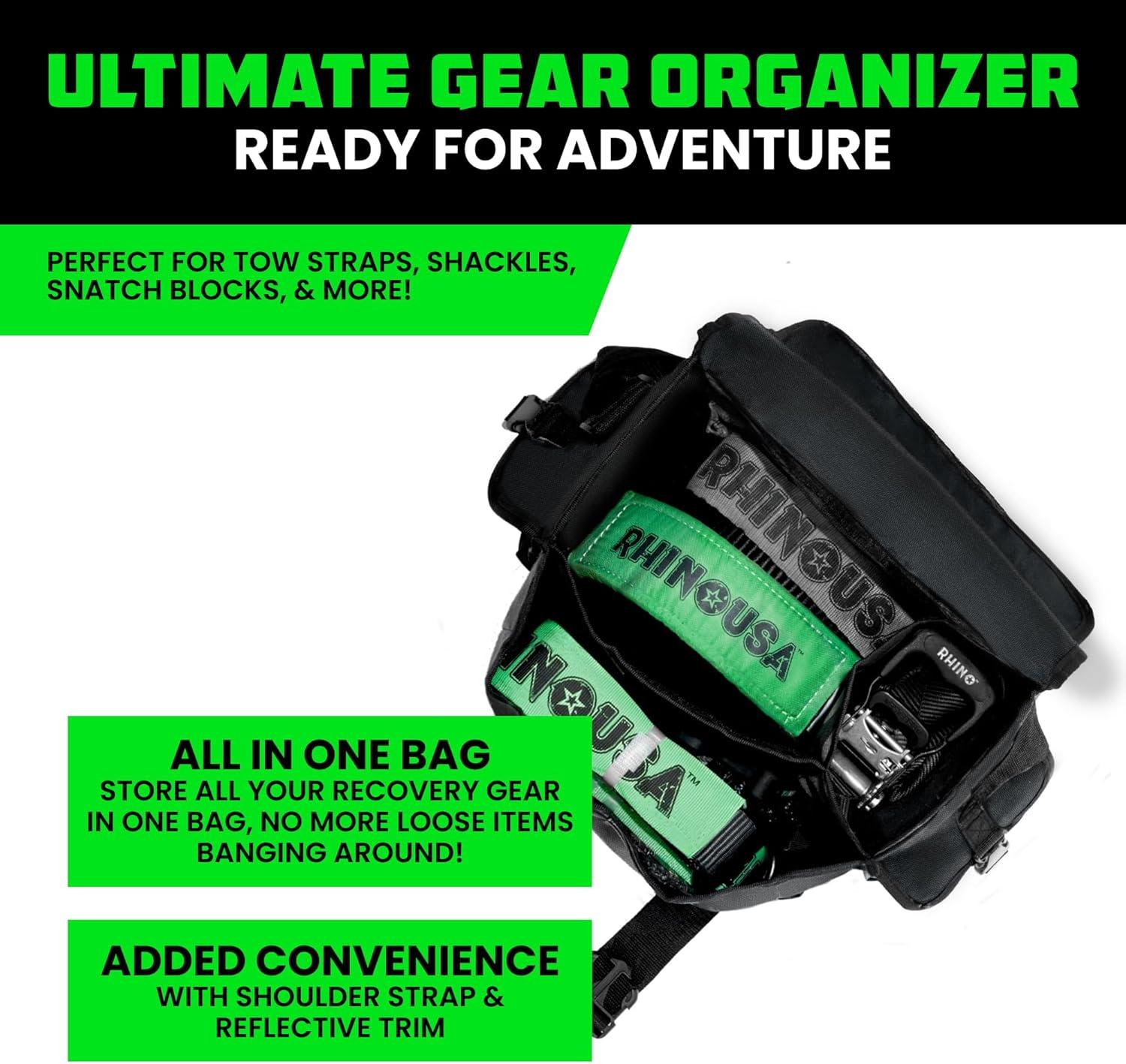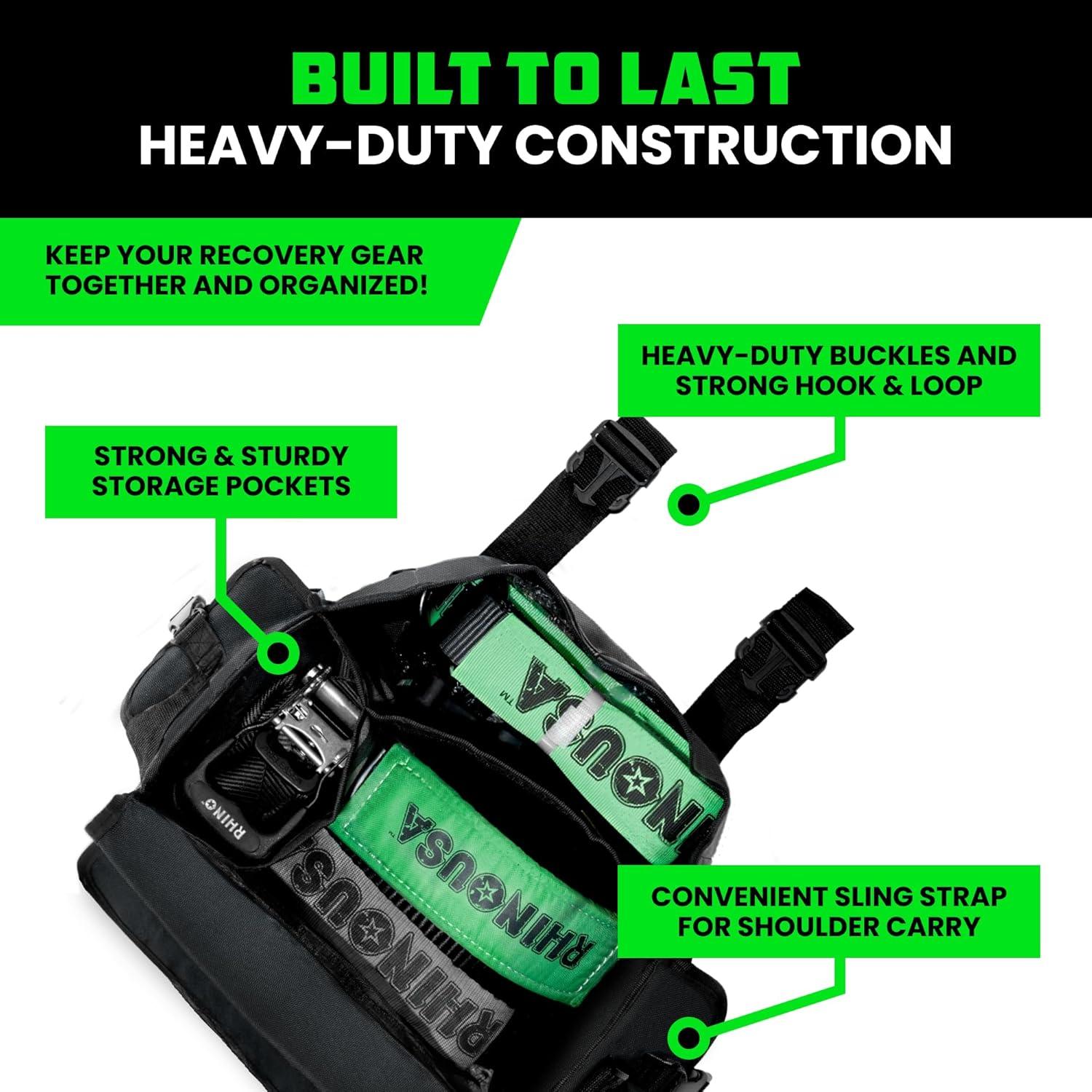 imageRhino USA Heavy Duty Recovery Gear Storage Bag  Ultimate Recovery Kit Equipment Bag For OffRoad Gear and 4x4 Accessories  Fits Tow Straps Shackles Snatch Block and UTV AccessoriesGreenBlack