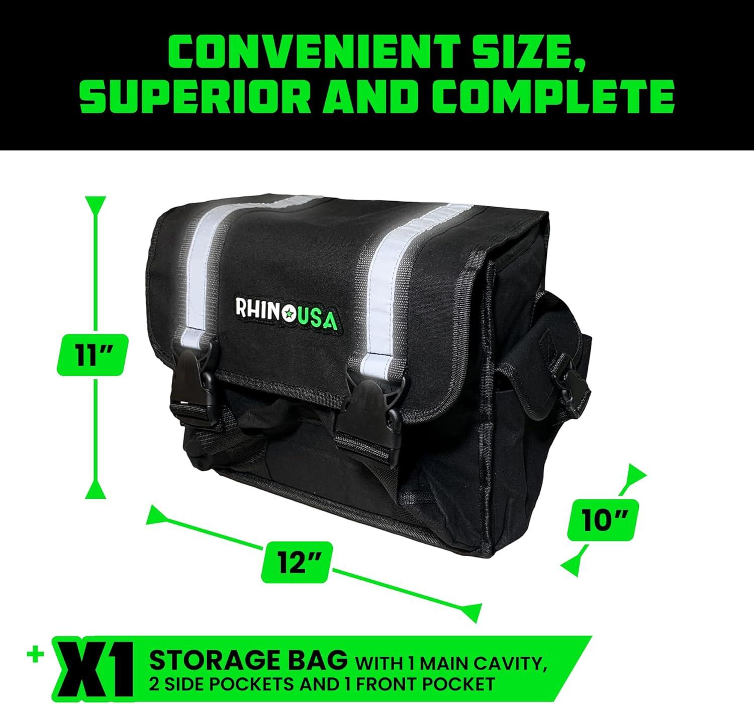 Rhino USA Heavy Duty Recovery Gear Storage Bag – Ultimate Recovery Kit Equipment Bag For Off-Road Gear and 4×4 Accessories – Fits Tow Straps, Shackles, Snatch Block, and UTV Accessories(Green)(Black)