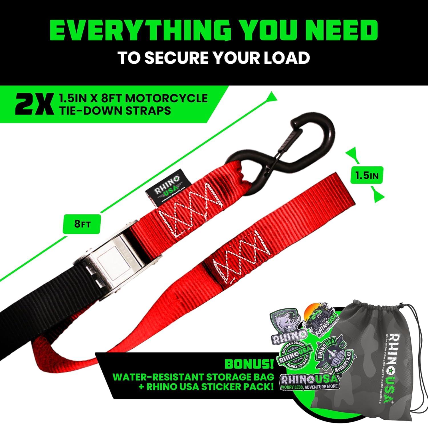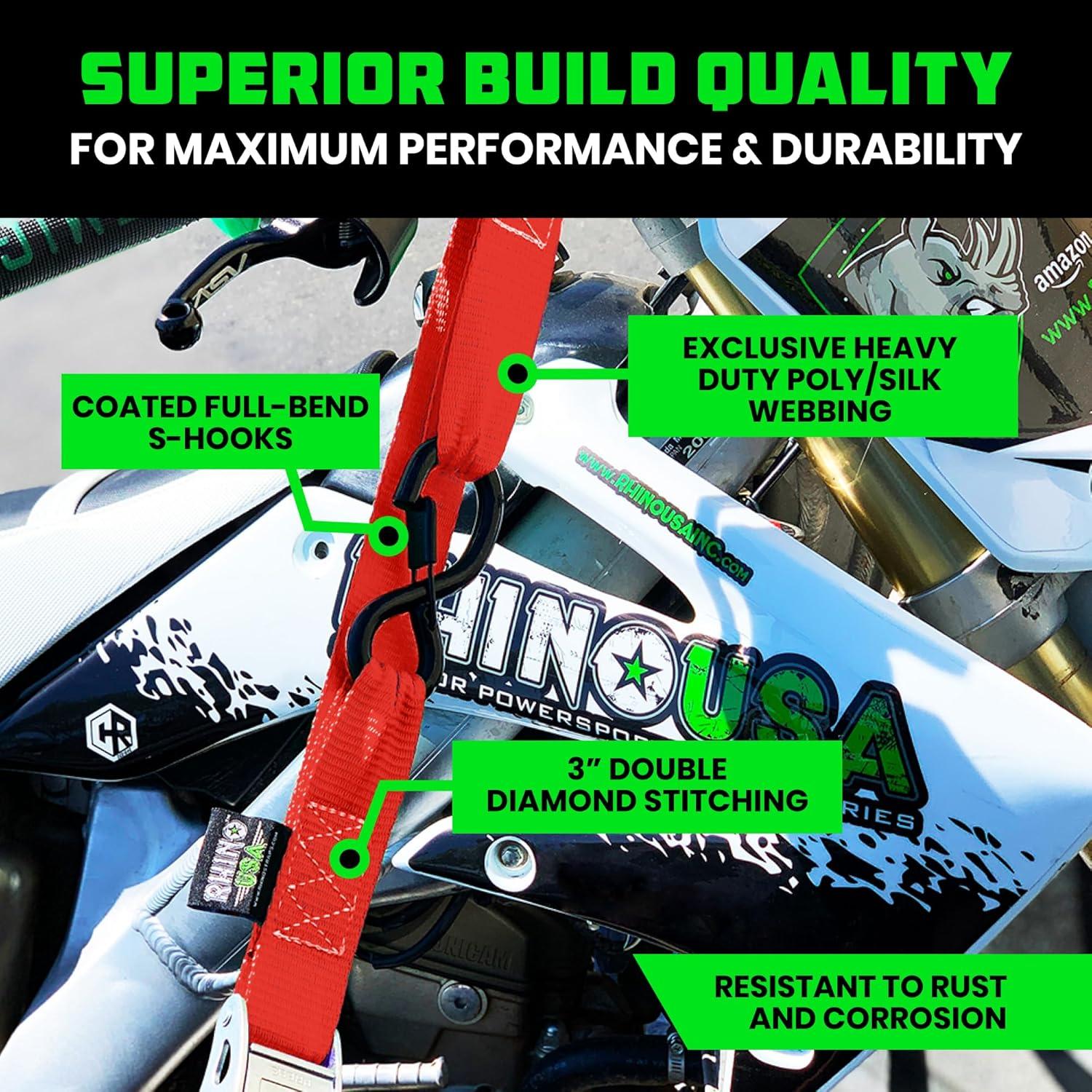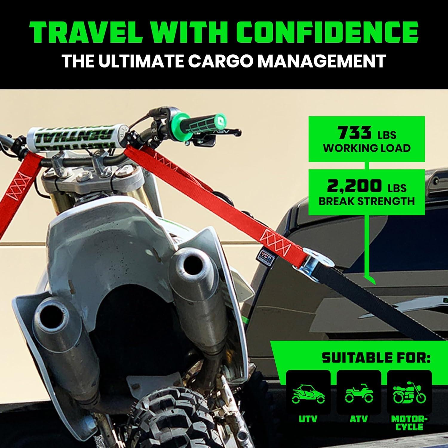 INTEGRATED SOFT LOOPS: Make Tying Down Mountain Bikes, E-Bikes and Dirt Bikes Easy! Simply Attach Soft Loops to Handlebars, Clip the S-Hook into and Anchor Point and Pull Tight!