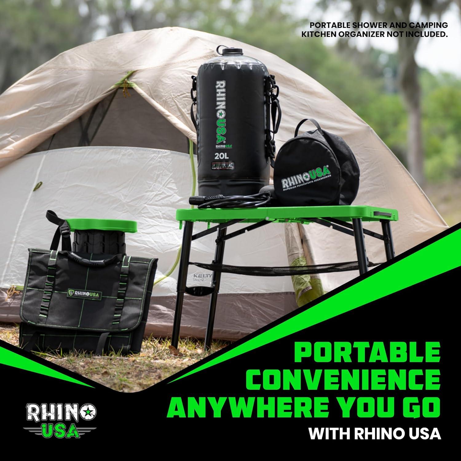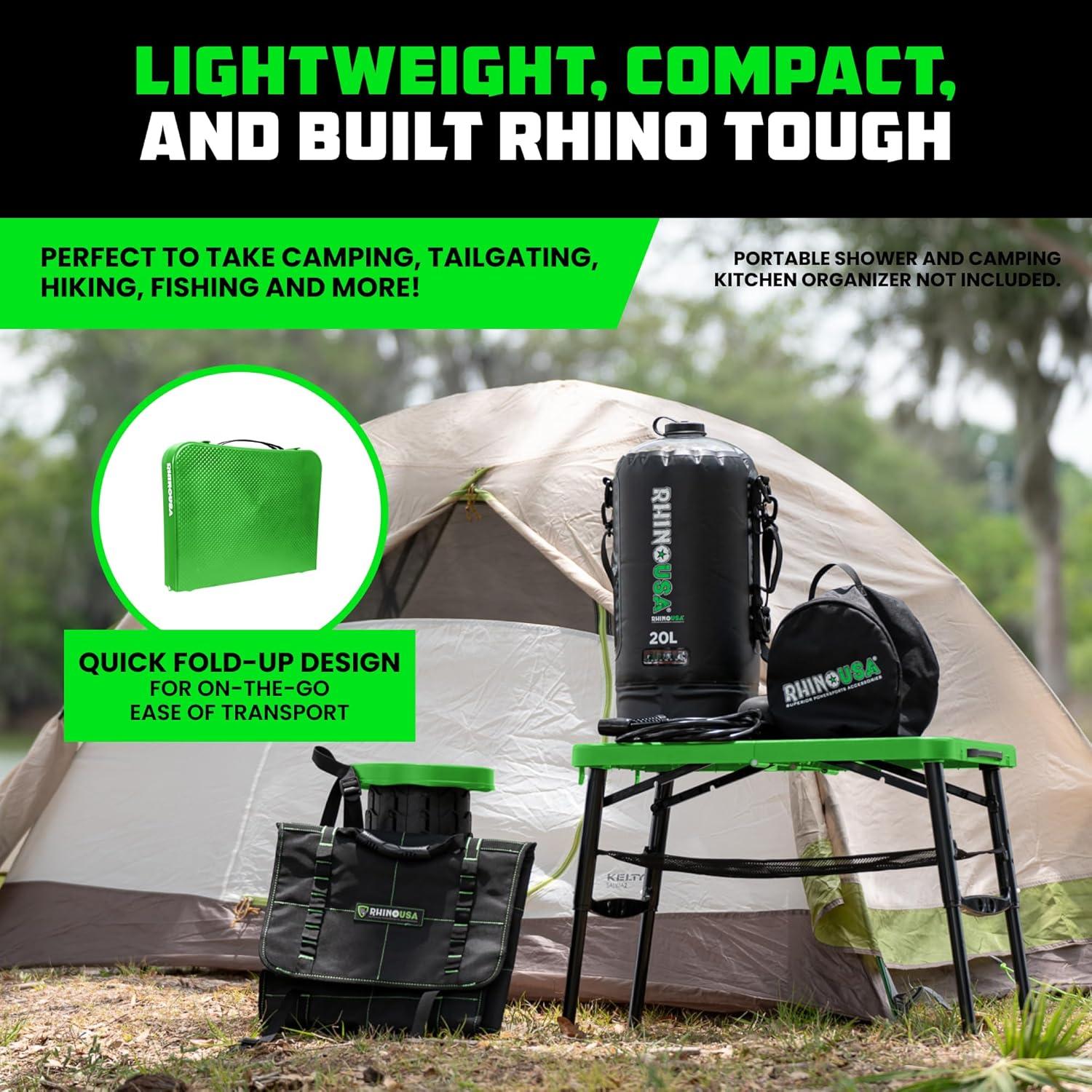 Rhino USA Portable Camping Table and Stool Set - Lightweight Foldable Camp Tables with Net for Beach Trips, Fishing, Picnic, Cooking & Much More (Green)