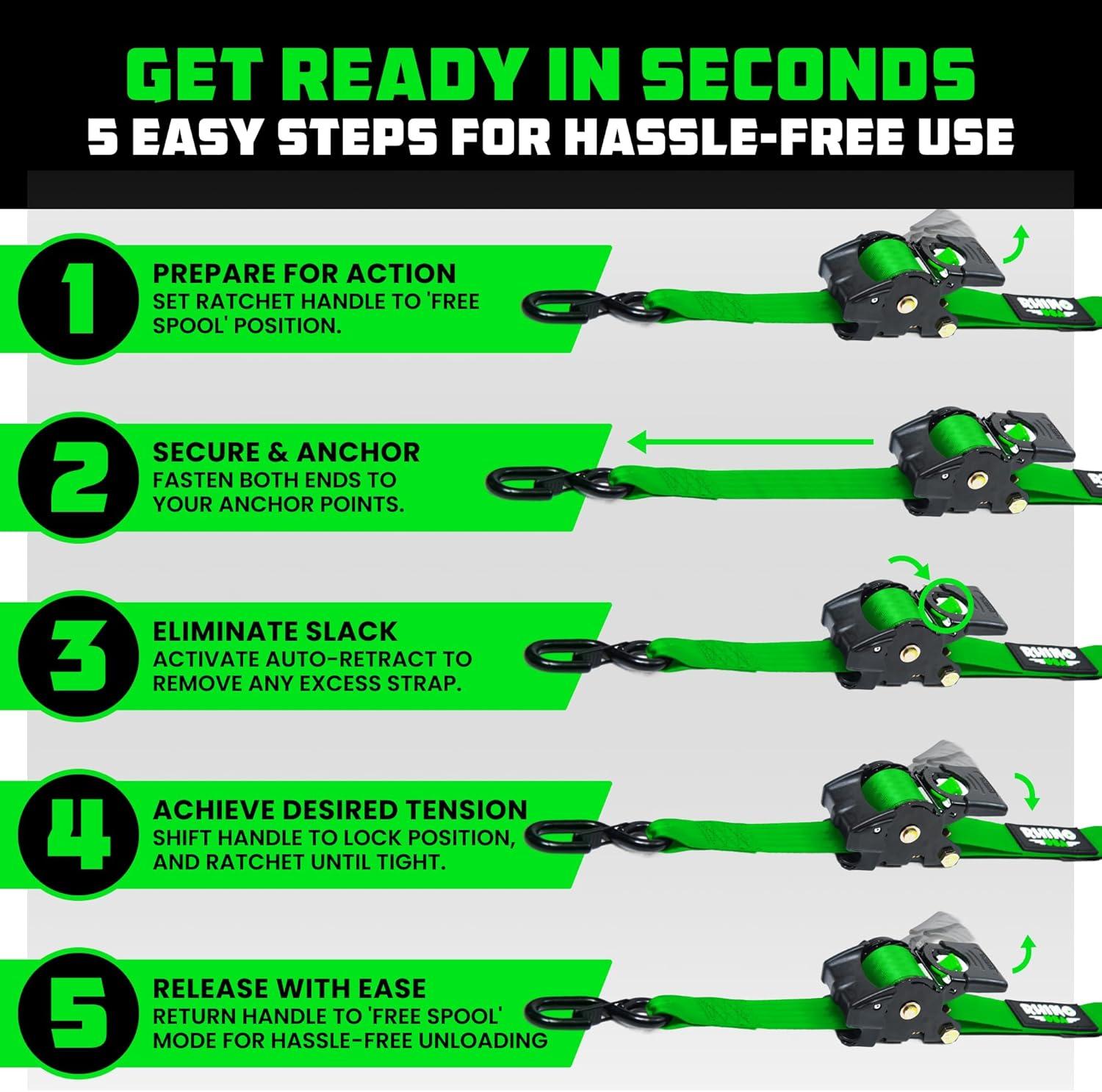 CHOOSE THE BEST, AVOID THE STRESS – Authentic, High-Quality Retractable Ratchet Straps—Designed and Tested in the USA to Exceed Safety Standards, Ensuring Your Cargo is Secure Without Compromise.