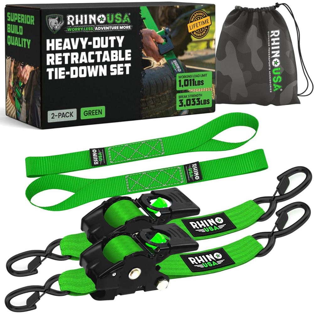 Be the first to review “Rhino USA Retractable Ratchet Straps (2-Pack) – 2 Inch x 10 Feet (3,033lb Break Strength) – Heavy Duty Auto Self Retracting Tie Down Straps for Truck, Cargo Trailer, Motorcycle, Rad & More – Red(Green)”