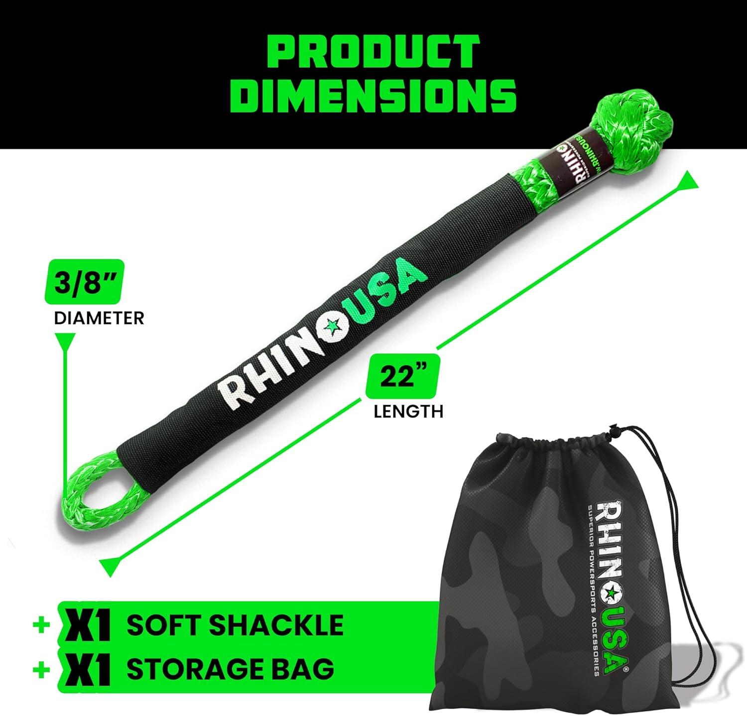 Rhino USA Synthetic Soft Shackle Rope (1-Pack) - 3/8 Inch x 22 Inch (31,400lb Min Break Strength) Offroad Soft Shackle Recovery Kit for Truck, UTV, ATV - Compatible with Jeep, Toyota, Ford & More!(Green)