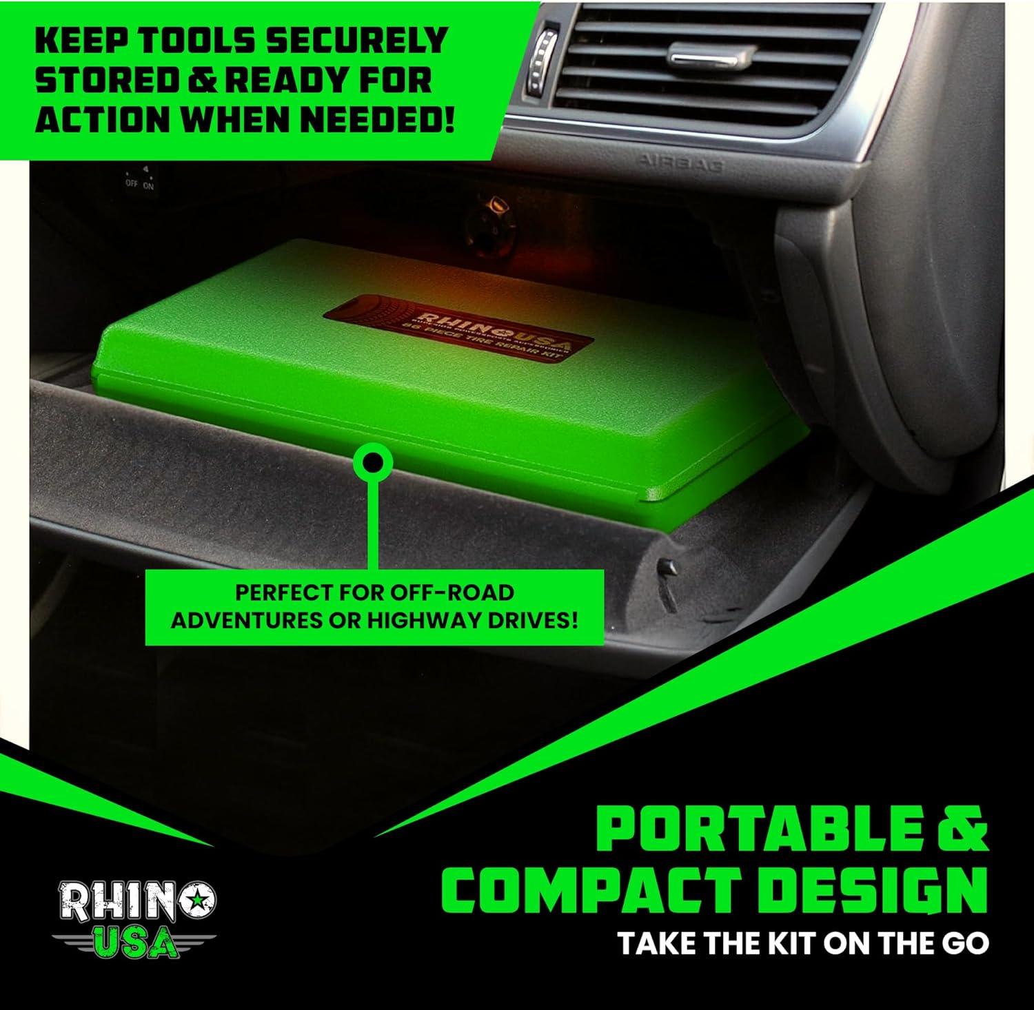 Rhino USA Tire Repair Kit (86-Piece) Professional Heavy Duty Tire Plug Kit to Fix Punctures & Patch Flats with Ease - Ultimate Tubeless Tire Repair Tools for Car, Motorcycle, ATV, UTV, RV and Trailer(86 Piece Set)